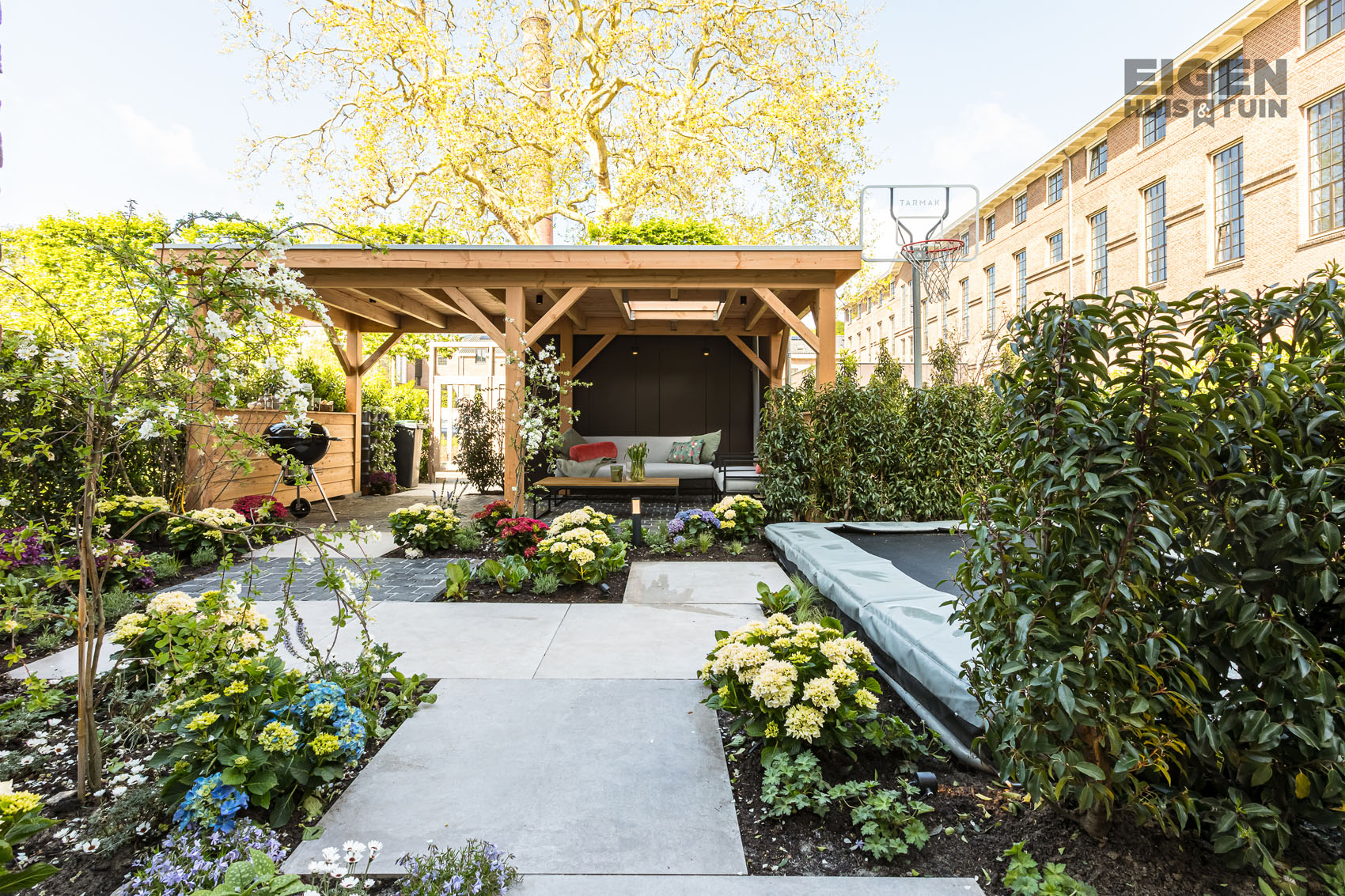 Een overkapping in de tuin zorgt niet alleen voor extra leefruimte, maar ook voor een knusse sfeer. De open zijkanten zorgen voor een ruimtelijk gevoel, terwijl de lichtkoepel in het dak overdag zorgt voor natuurlijk licht. Zo kan er ook 's avonds optimaal van de tuin worden genoten dankzij de warmte die de overkapping vasthoudt.