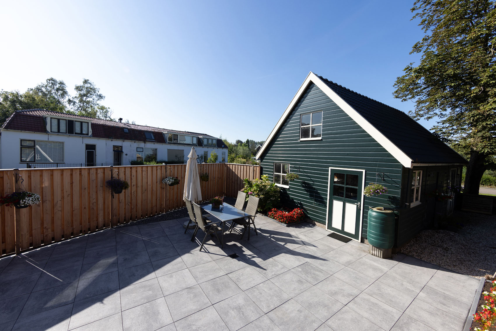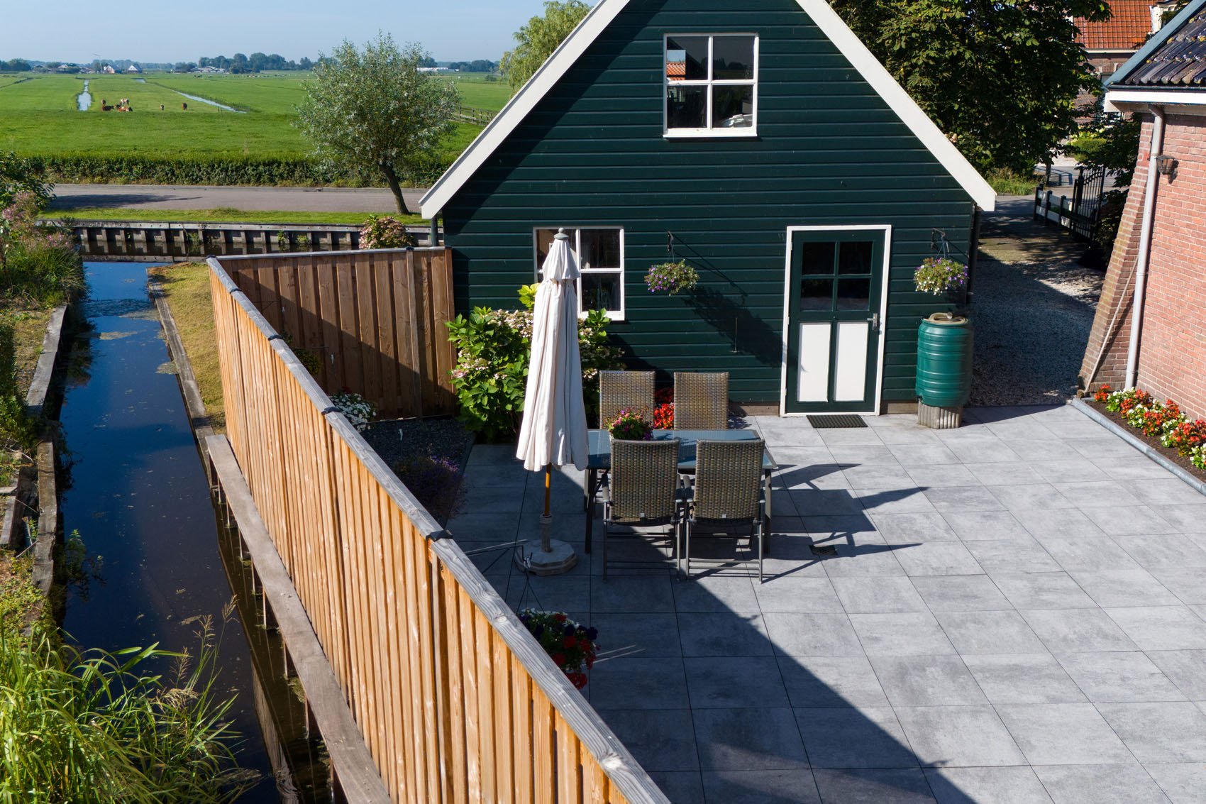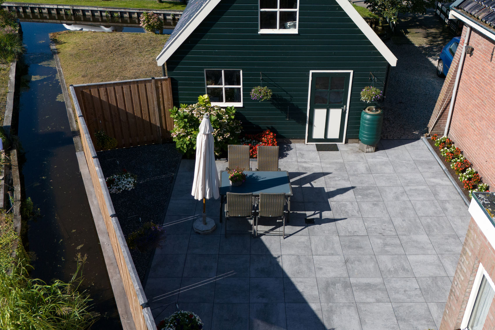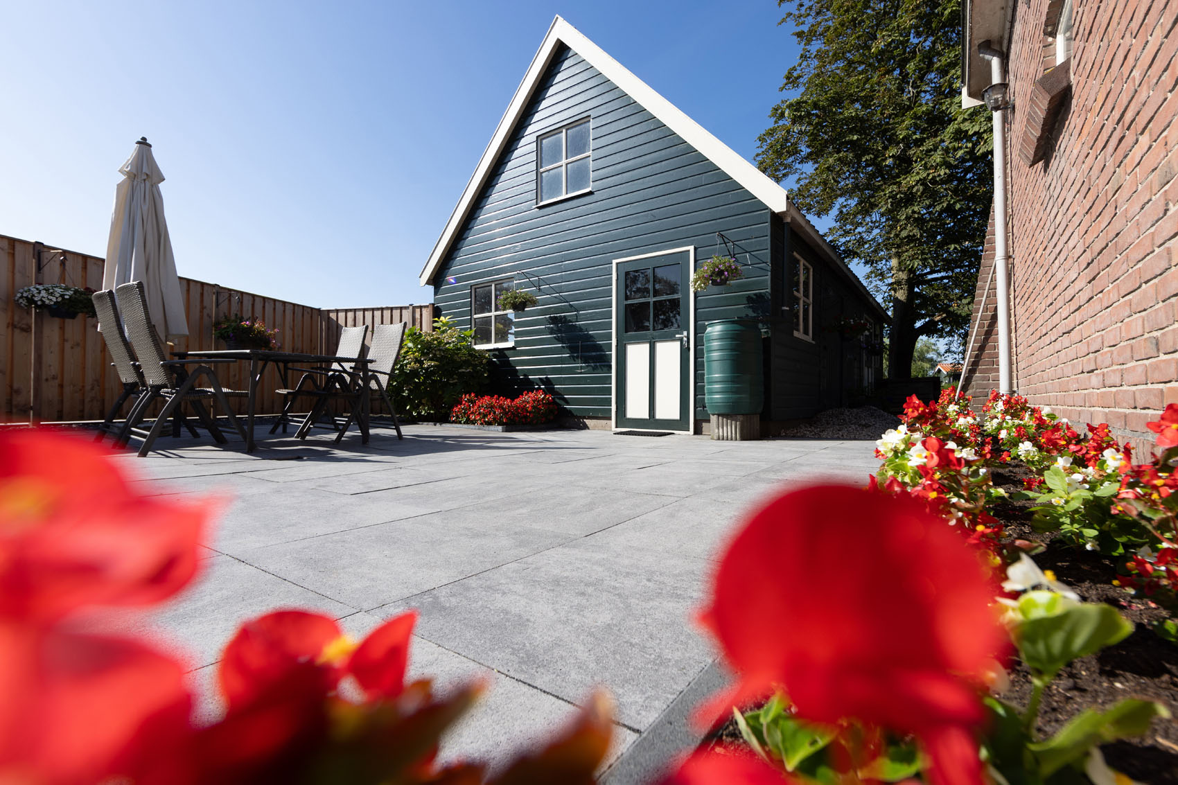 C'est dans le village pittoresque d'Aarlanderveen qu'a été aménagé ce jardin champêtre doté d'une grande terrasse. Les dalles GeoSteen® assurent ici un équilibre parfait entre la maison de style classique et le cadre verdoyant. Calme, espace et facilité d'entretien se marient harmonieusement dans ce jardin.