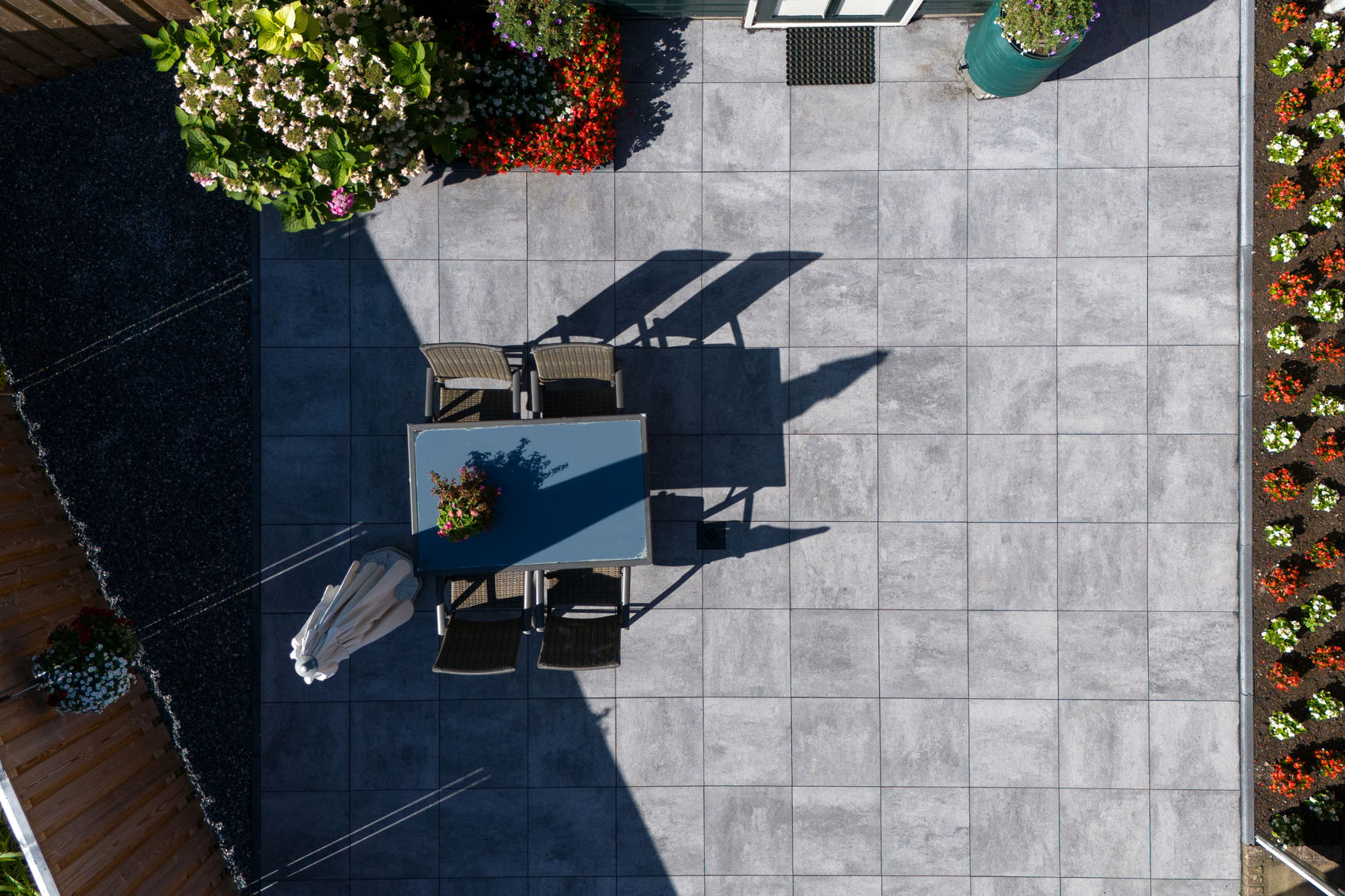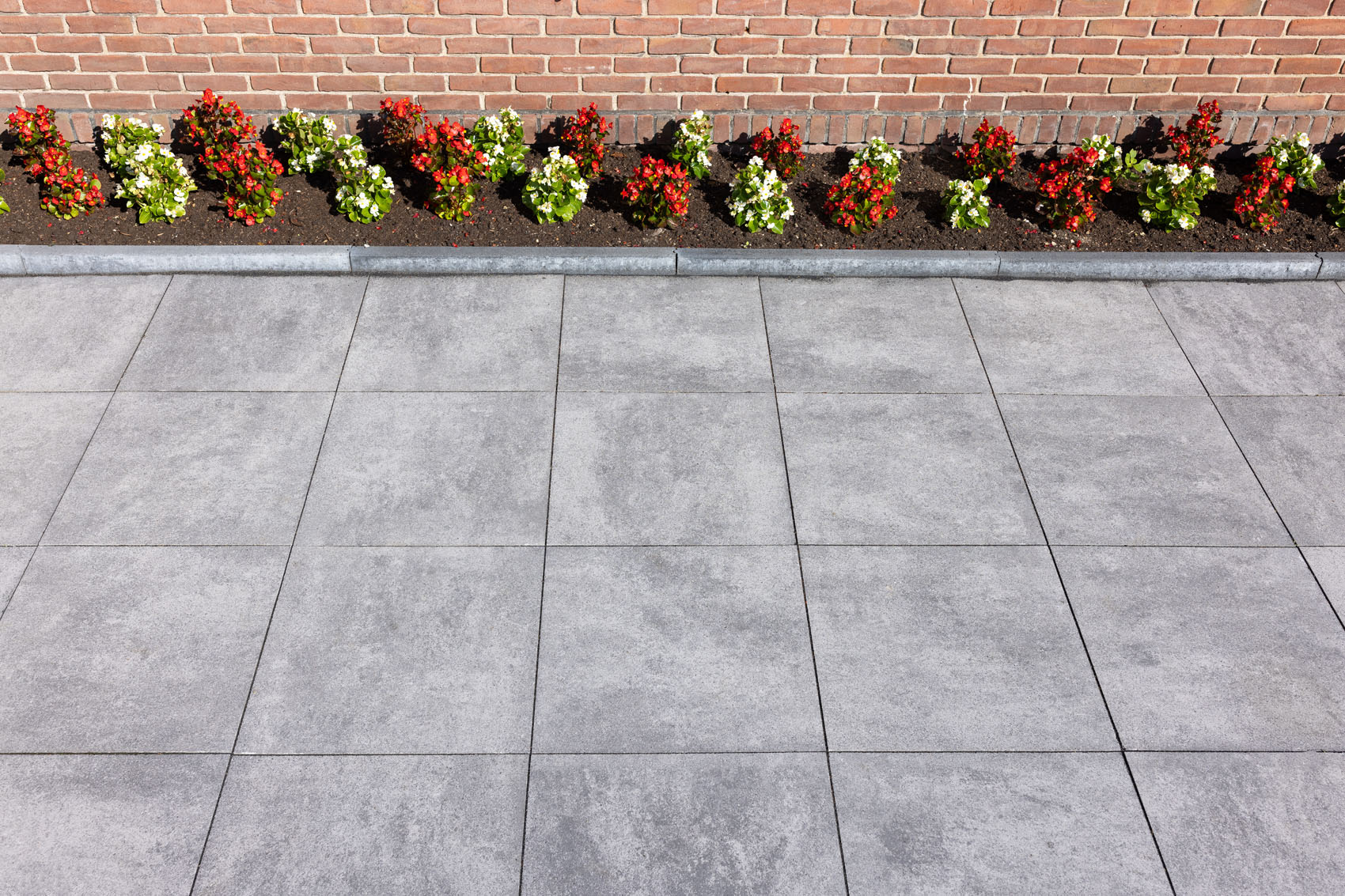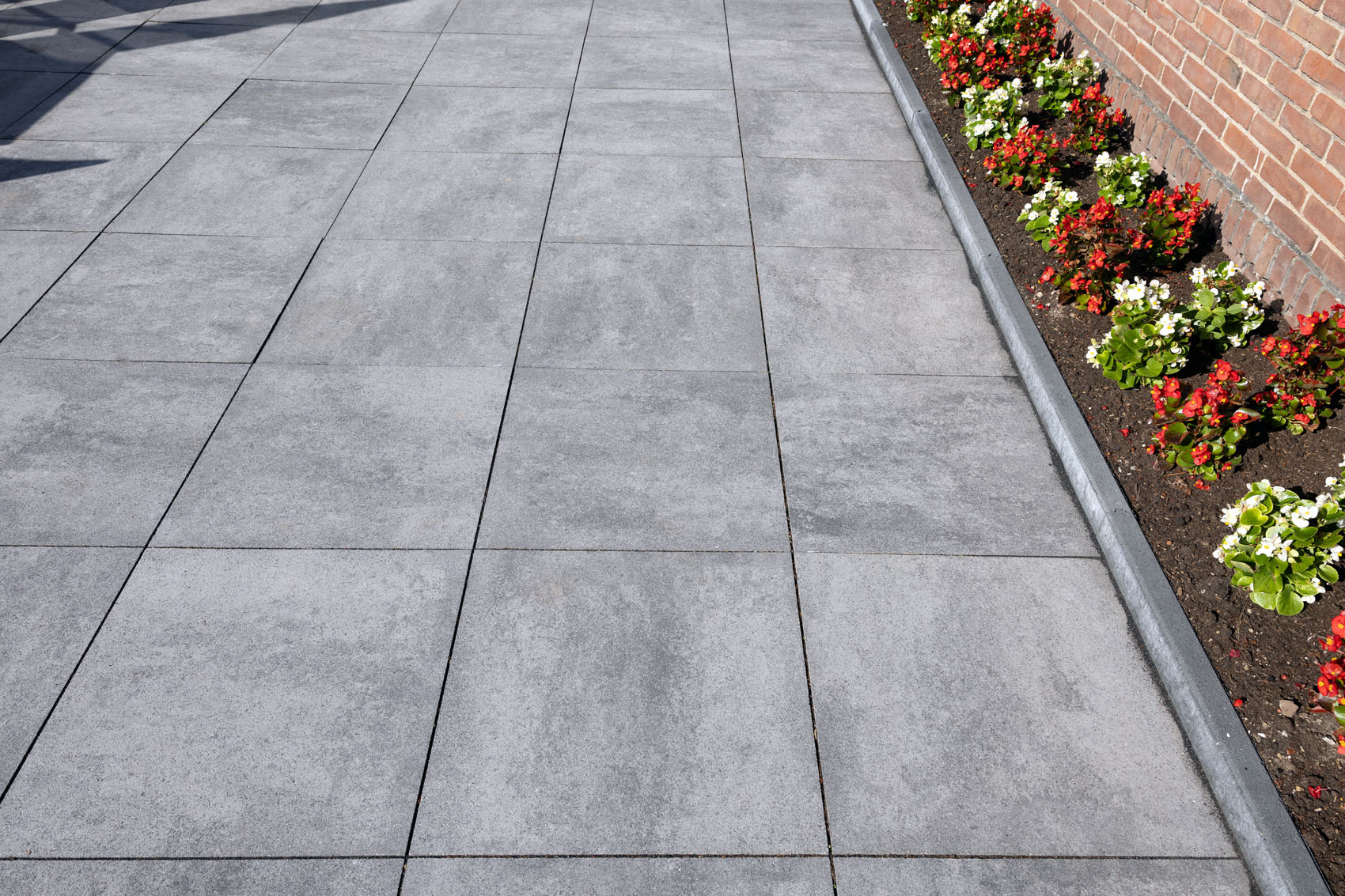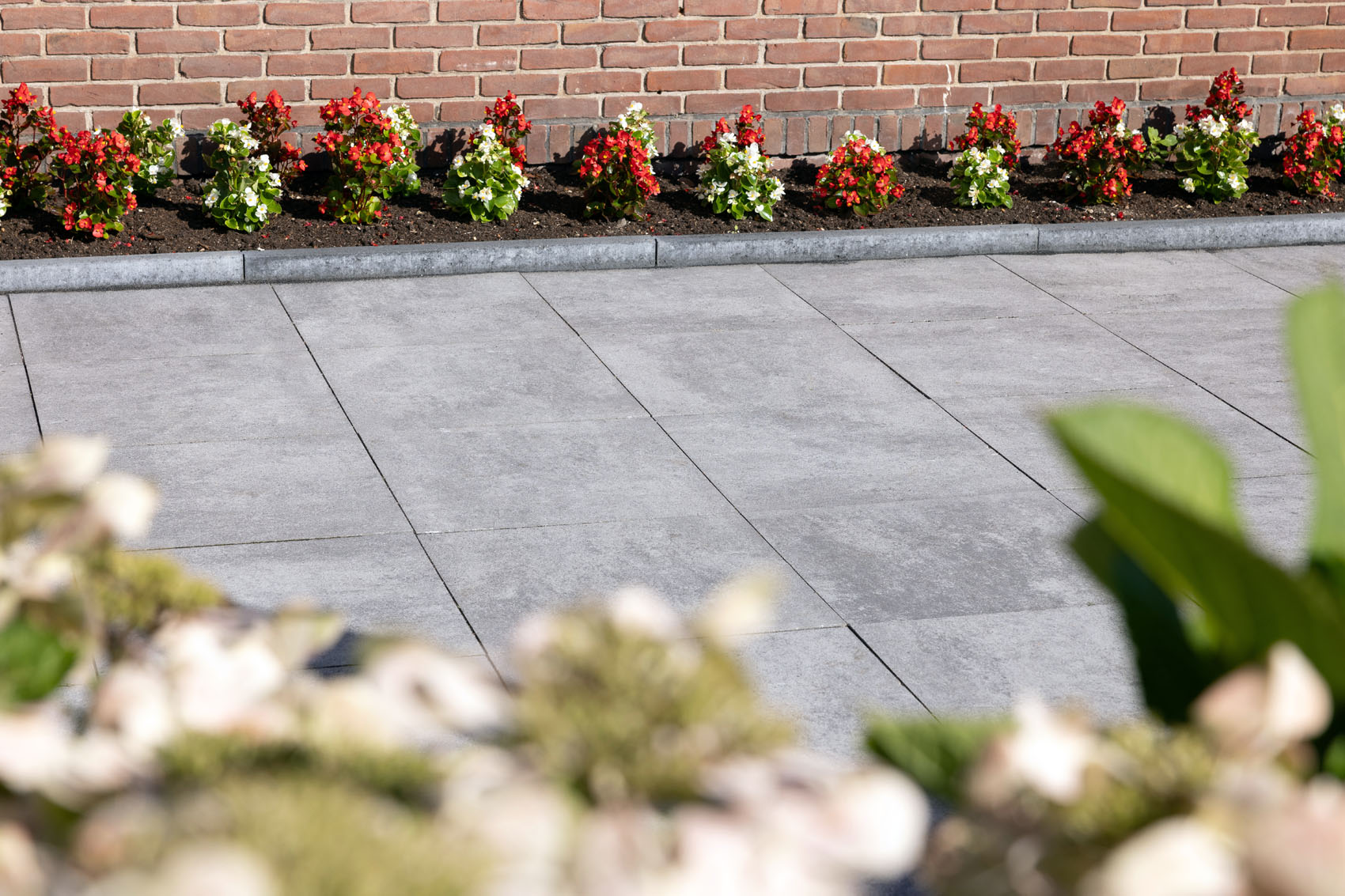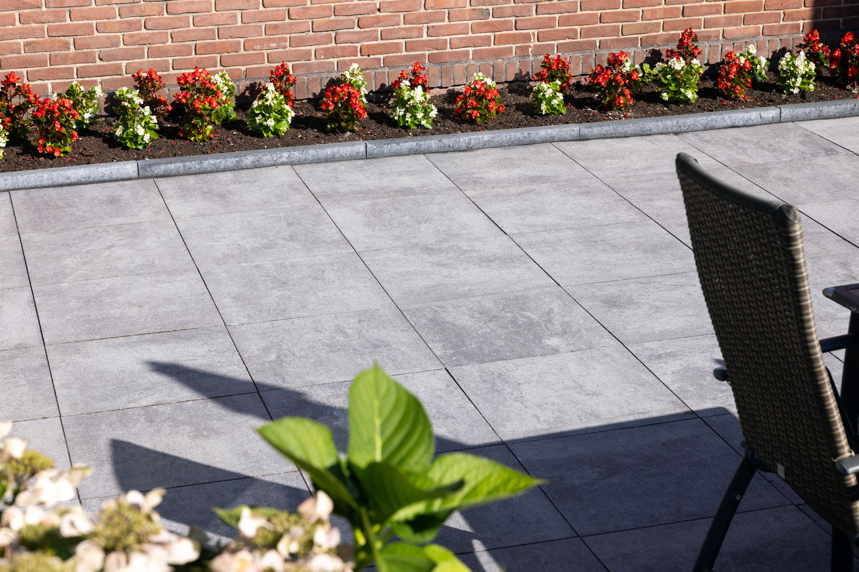Grâce à la technologie innovante Inuancia, les dalles GeoCorso présentent un jeu fluide et nuageux de couleurs nuancées. Ici, le choix s'est porté sur la couleur Bari, un gris clair qui fait ressortir les plantes colorées. La Bari n'est pas une simple dalle grise, mais une dalle aux nuances subtiles qui ajoute de la profondeur au jardin et contraste magnifiquement avec les différents éléments qui le composent. La gamme GeoCorso propose douze couleurs qui offrent une beauté inégalée.