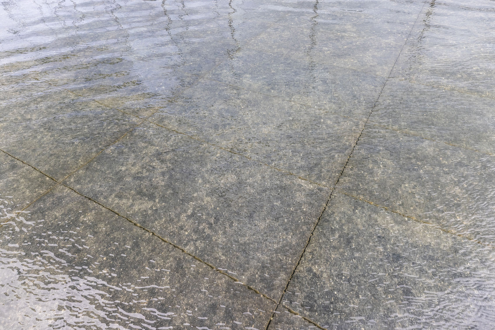 De tegels zijn verwerkt op verstelbare tegeldragers van circa 25 tot 30 cm hoog. Door de tegels circa 5 à 10 cm onder het wateroppervlak te leggen is het spiegeleffect versterkt. De verstelbare tegeldragers hebben bovenop afstandhouders van 5 mm, waardoor de voegafstand consistent 5 mm is. Dit maakt perfecte verwerking mogelijk.