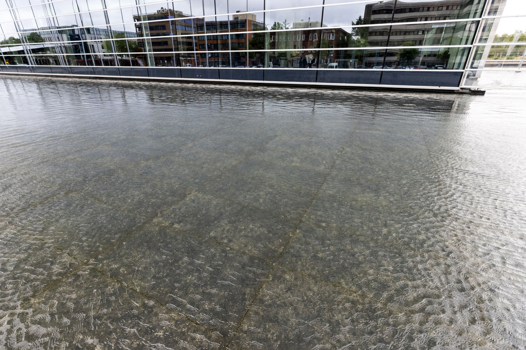 Onder het kantoorgebouw moest een ‘spiegel’ komen, waarin de weerspiegeling van het EPO kantoorgebouw in het omringende water te zien is. Een intensieve en constructieve samenwerking tussen Dam & Partners, JP van Eesteren, Rots Maatwerk en MBI ging van start. In het traject van materiaalkeuze is een proefopstelling gebouwd om het concept te testen. Met hoofwaardige keramiek en een uitstekende waterhuishouding is een blijvend spiegeleffect gecreëerd. Als onderdeel van dit intensieve traject is Rots Maatwerk op fabrieksbezoek geweest bij Mirage, producent van hoogwaardig Italiaans keramiek, om alle ins en outs van keramiek te leren kennen.
