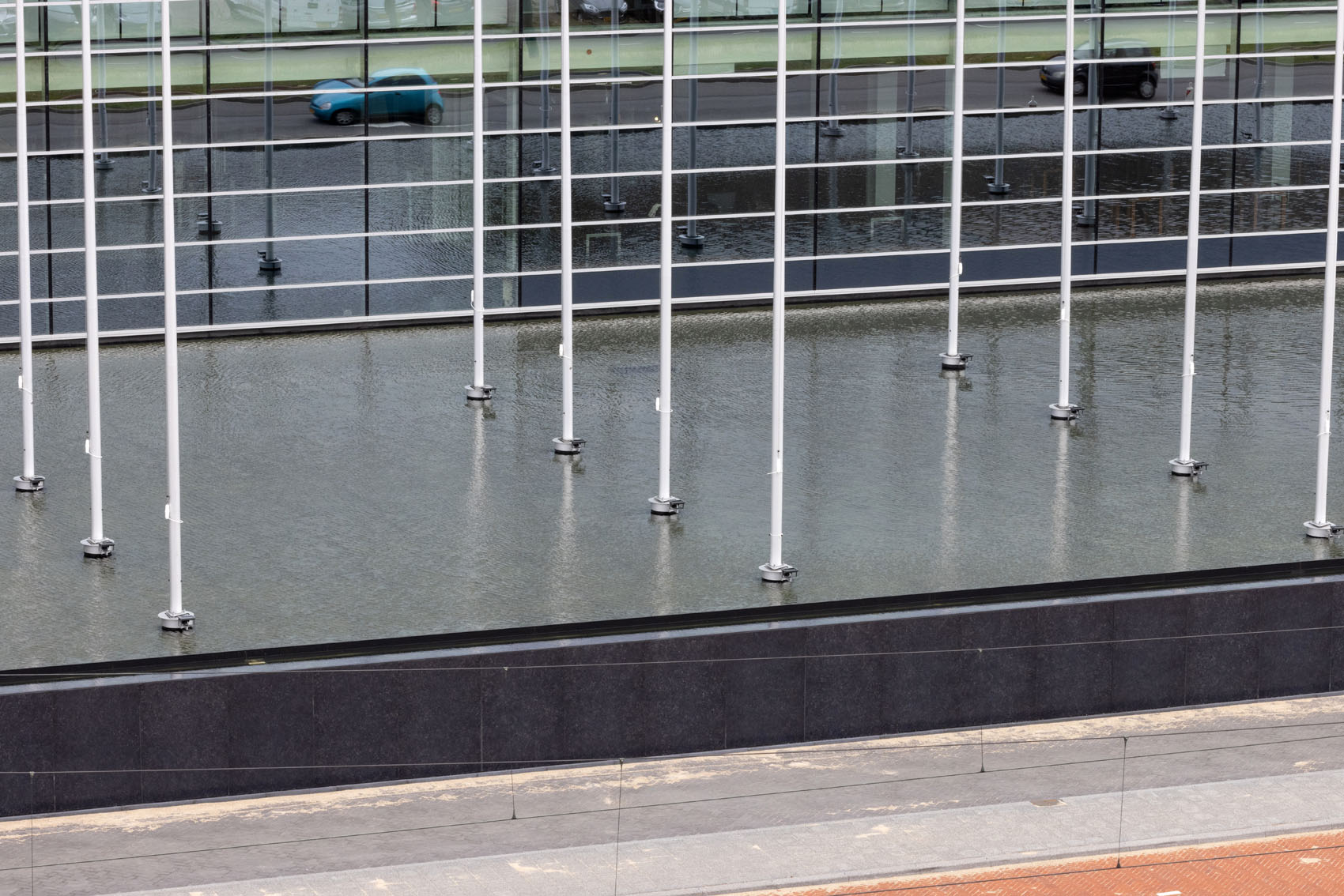 Voor de spiegel van het EPO kantoorgebouw is ruim 8.000 m2 geleverd aan keramische tegels. Dit betrof een maatwerkproductie om aan de wensen van de opdrachtgever te voldoen. Deze tegels zijn onder water toegepast, wat een primeur is voor MBI op deze schaal. Door een vochtopname van slechts 0,02% was massief keramiek de perfecte keuze voor dit bijzondere project. Naast de toepassing is ook gekeken naar o.a. het formaat en het gewenste effect. Met een formaat van 120x60x2 cm sluiten de keramische tegels volledig aan op de maatvoering van de ramen in het gebouw. Hierdoor loopt het lijnenspel van het gebouw door in het water. Om het ‘spiegeleffect’ te bereiken, zijn de tegels geproduceerd in een gladdere uitvoering (R10). Normaliter levert MBI buitentegels met hogere stroefheid (R11 of R12) voor minimaal uitglijrisico. Doordat de tegels bij EPO Rijswijk niet worden belopen is de R10 uitvoering de juiste keuze voor dit project.