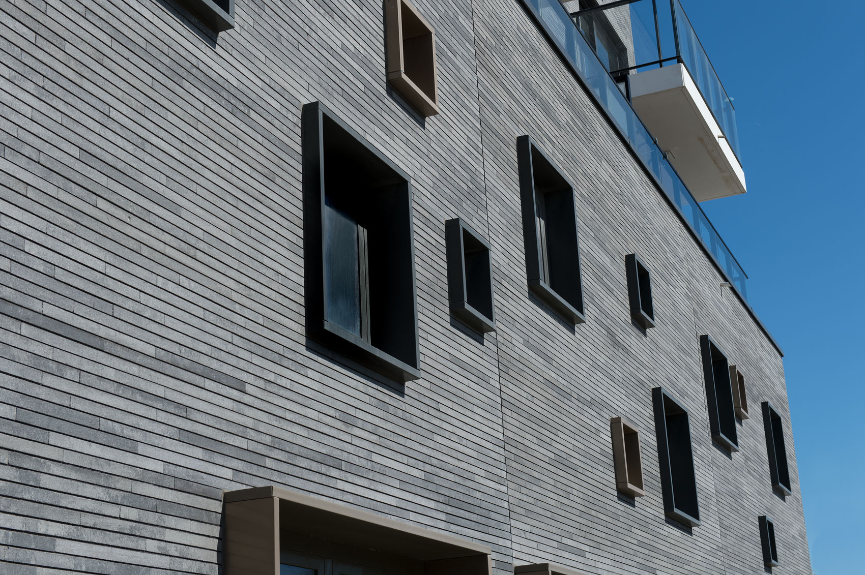 Een aanzienlijk deel van de hoogwaardige materialen in het O'Sea-project bestaat uit GeoStylistix gevelstenen en steenstrips. Deze gevelstenen, met hun lange, slanke formaat en kleurechte toplaag van natuurlijke granulaten, bieden ultieme ontwerpvrijheid en creëren een uniek en eigentijds gevelbeeld. De keuze voor GeoStylistix onderstreept de focus op kwaliteit en duurzaamheid, passend bij de visie van het project.