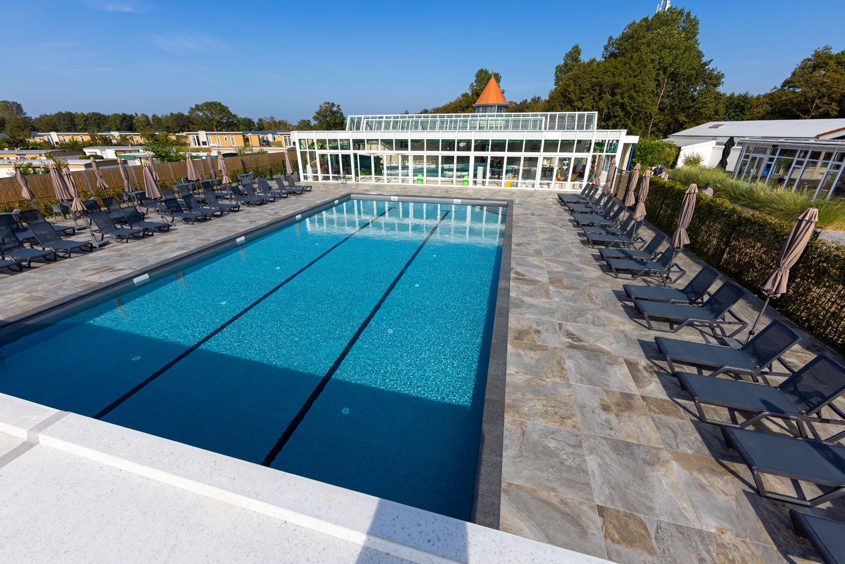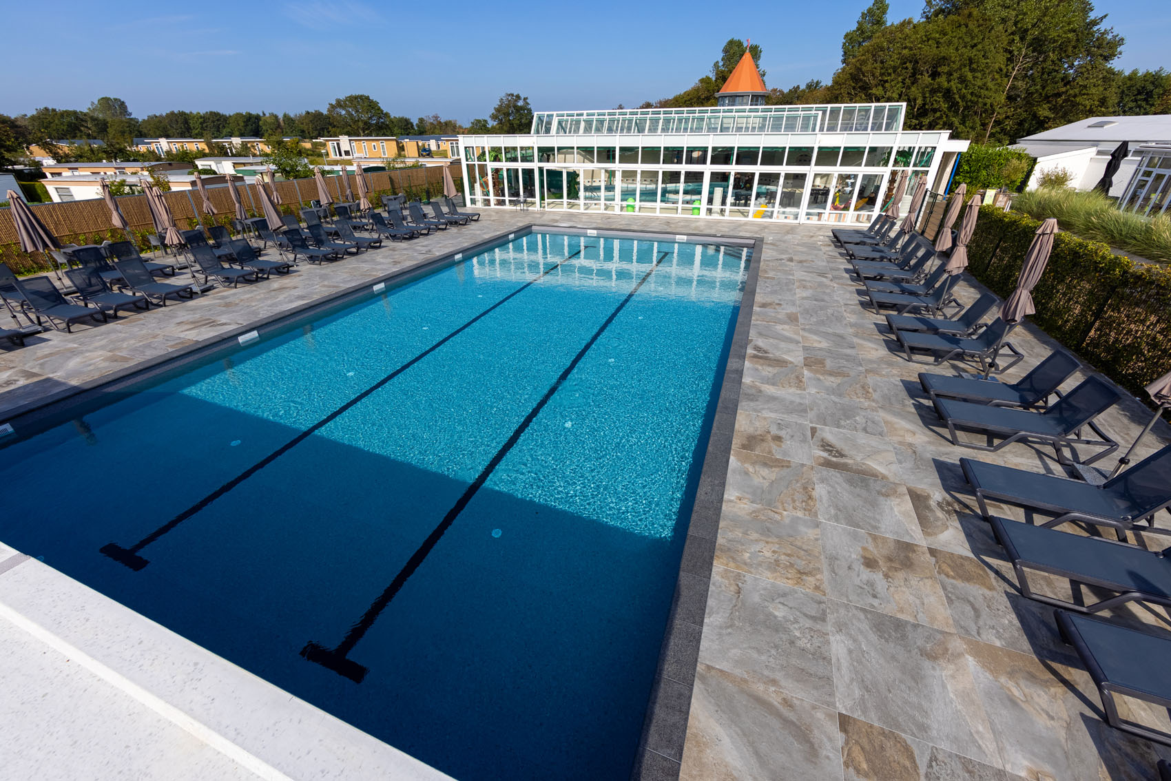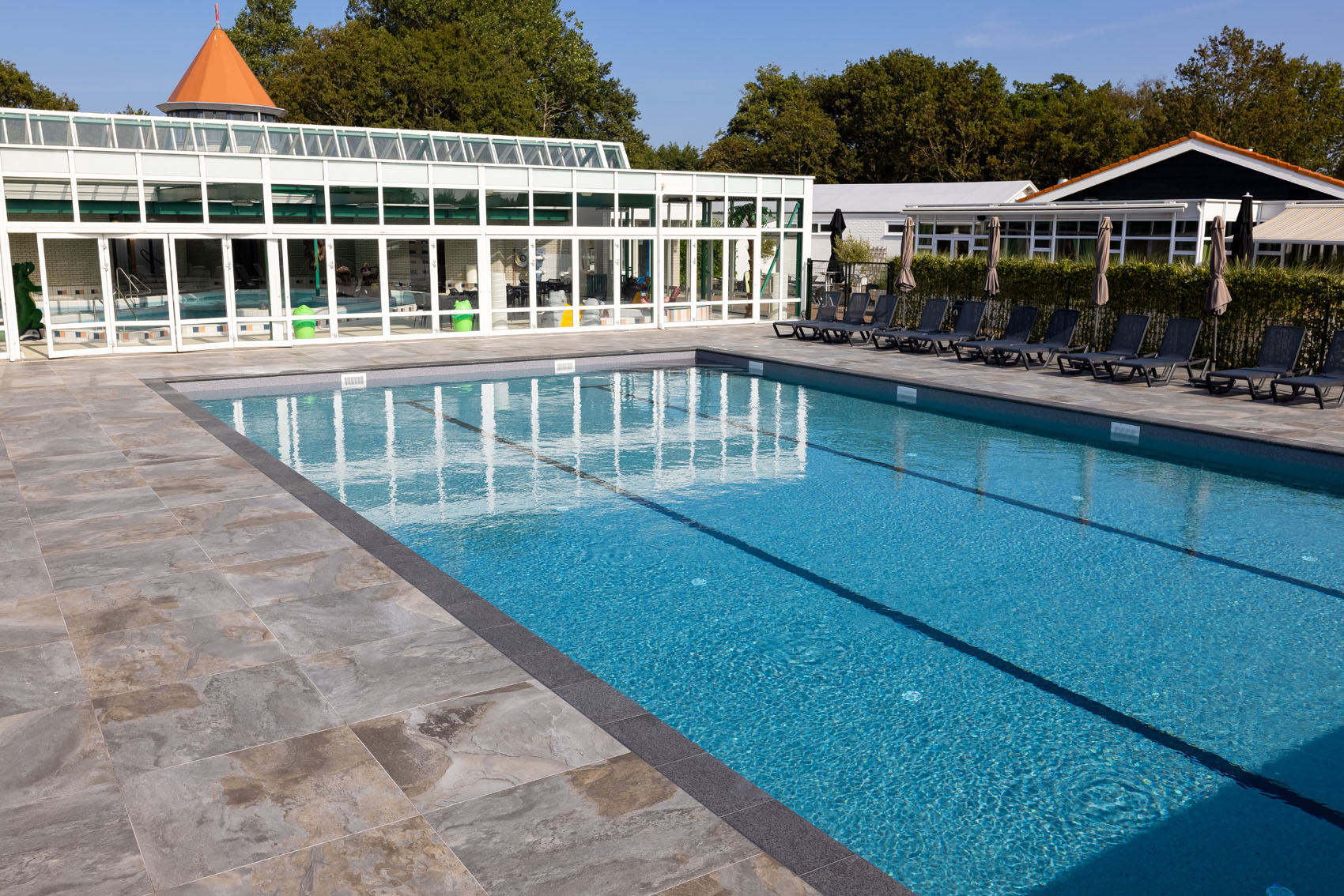 Camping Ginsterveld heeft met de keuze voor 100x100 cm tegels van GeoCeramica® een indrukwekkend en duurzaam buitenzwembad gecreëerd. De combinatie van grote tegels, maatwerk elementen en een naadloos ontwerp zorgt voor een luxueuze en functionele buitenruimte die bestand is tegen de uitdagingen van een campingomgeving.