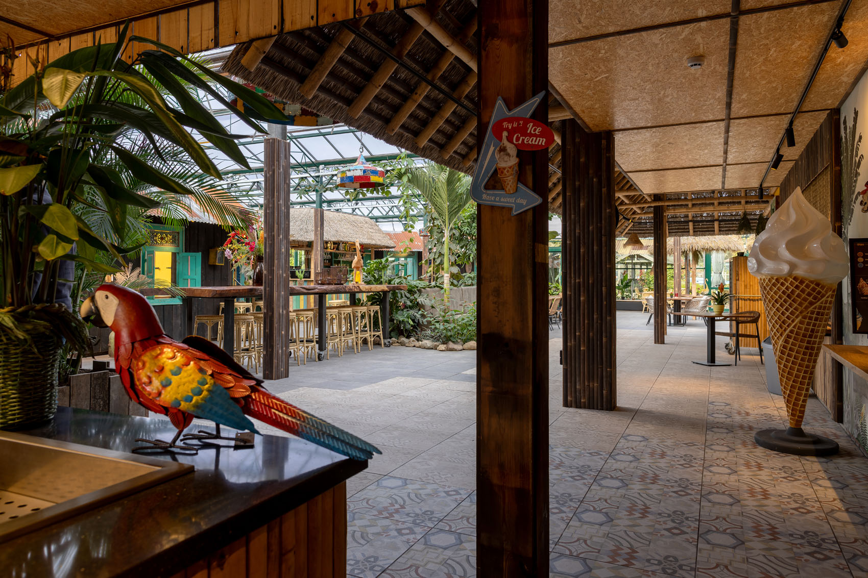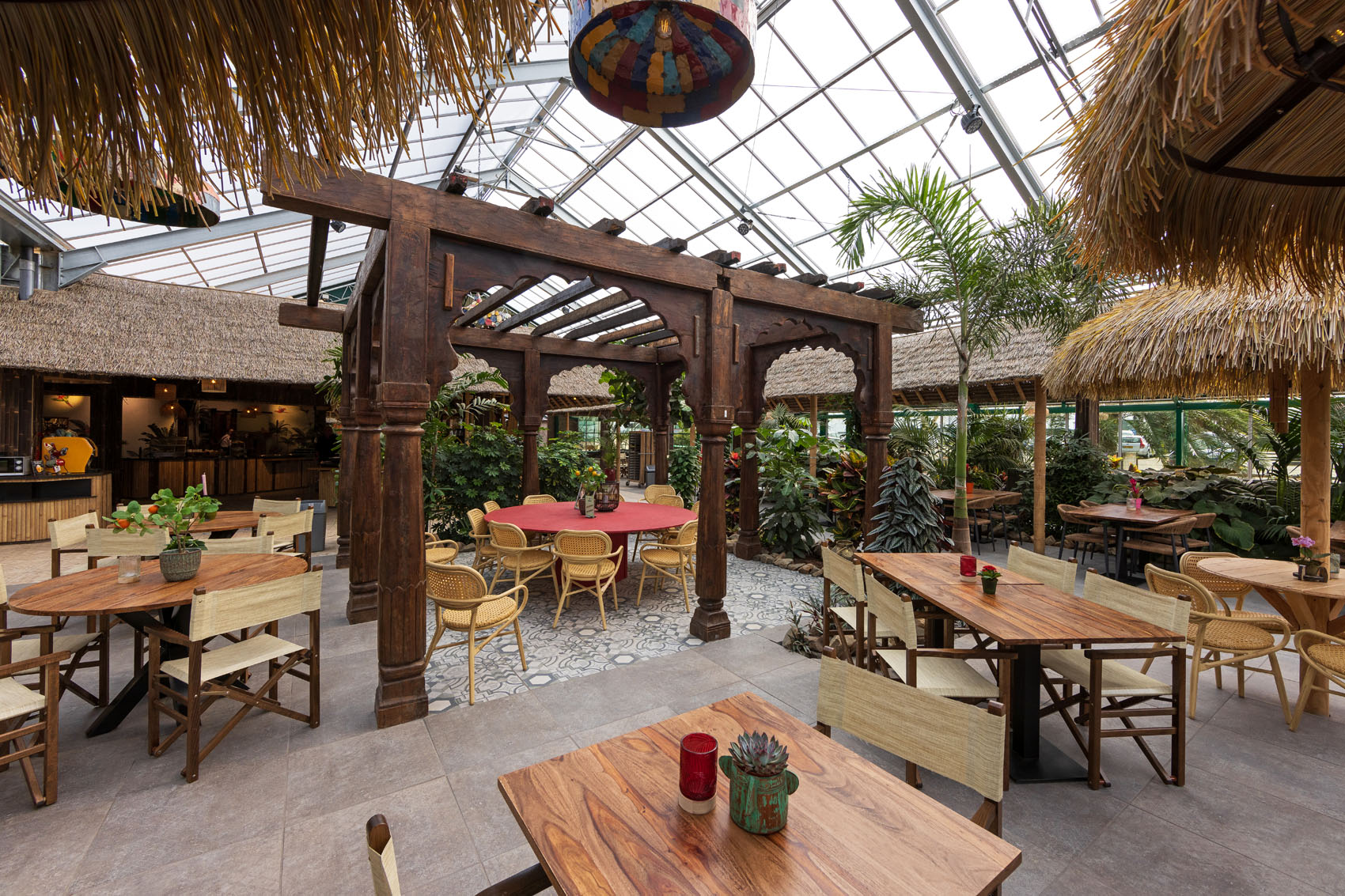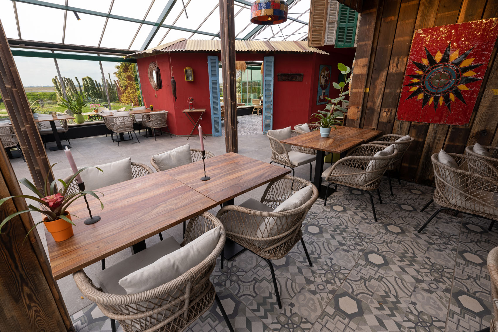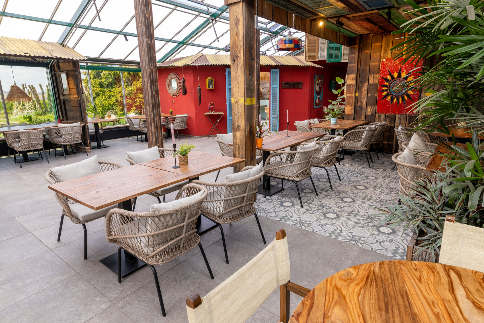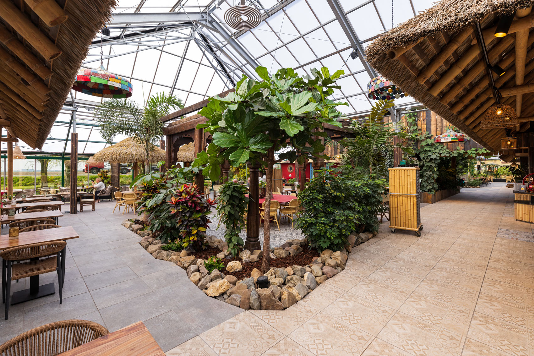 Breddels Architecten heeft met GeoCeramica® een meesterwerk gecreëerd dat perfect past bij de omgeving van de Orchideeënhoeve. De tegels vormen een prachtige achtergrond voor de weelderige groene planten en kleurrijke bloemen, en ze laten het zonlicht binnenstromen, wat zorgt voor een warme en uitnodigende sfeer. In het hart van de betoverende Orchideeënhoeve te Luttelgeest wordt de schoonheid van de natuur gecombineerd met de verfijning van hedendaags design.