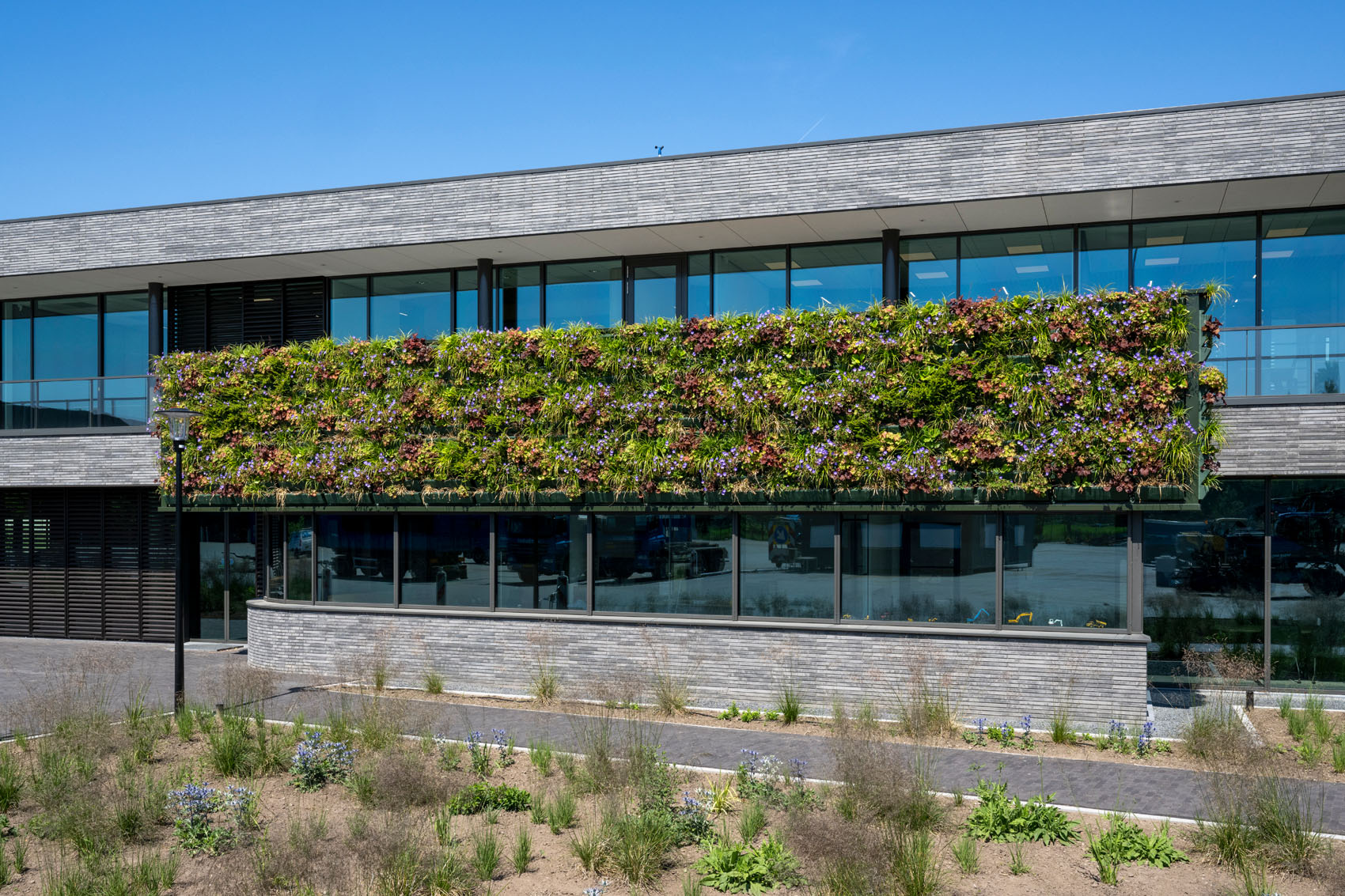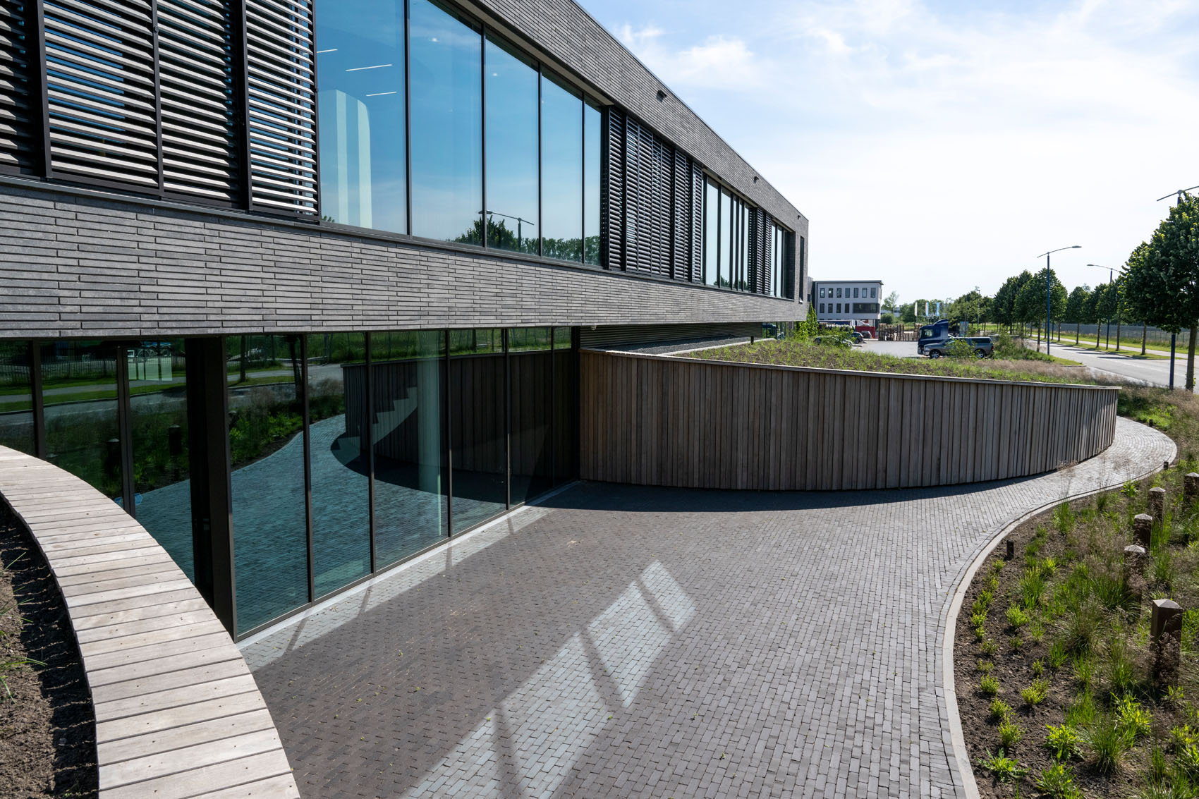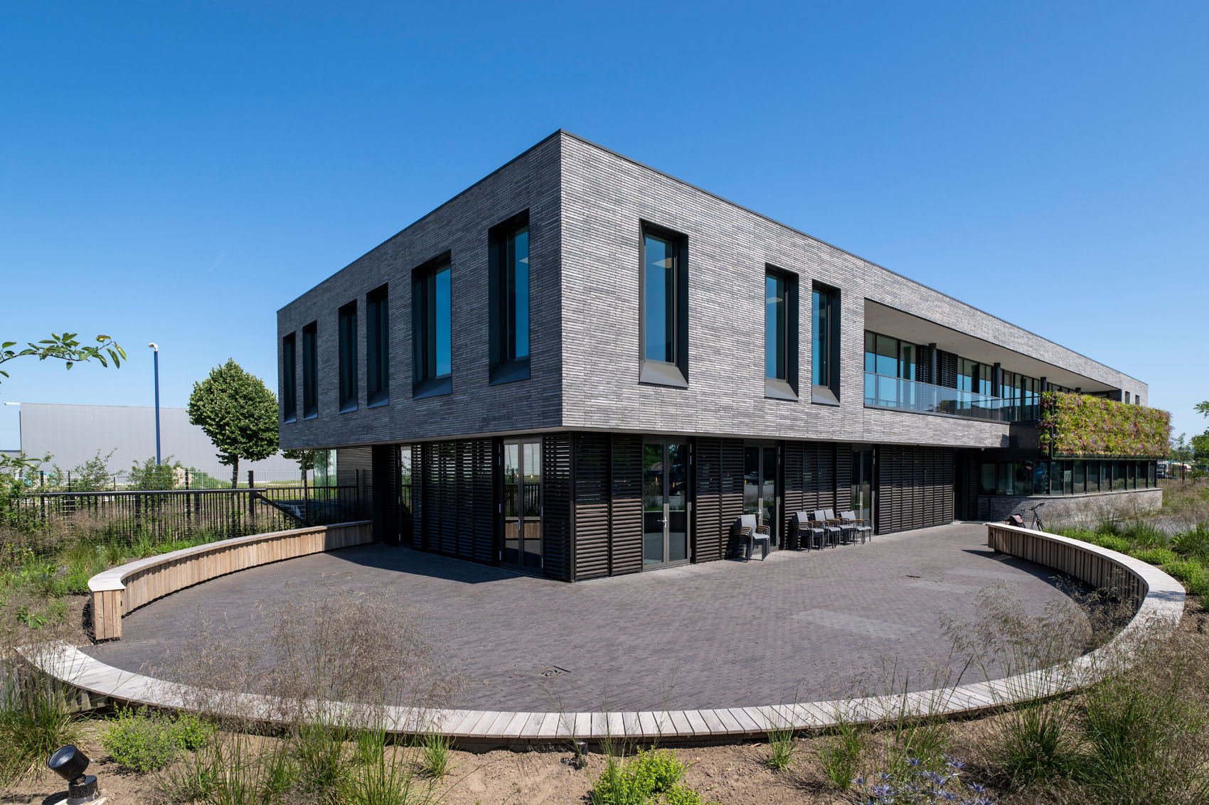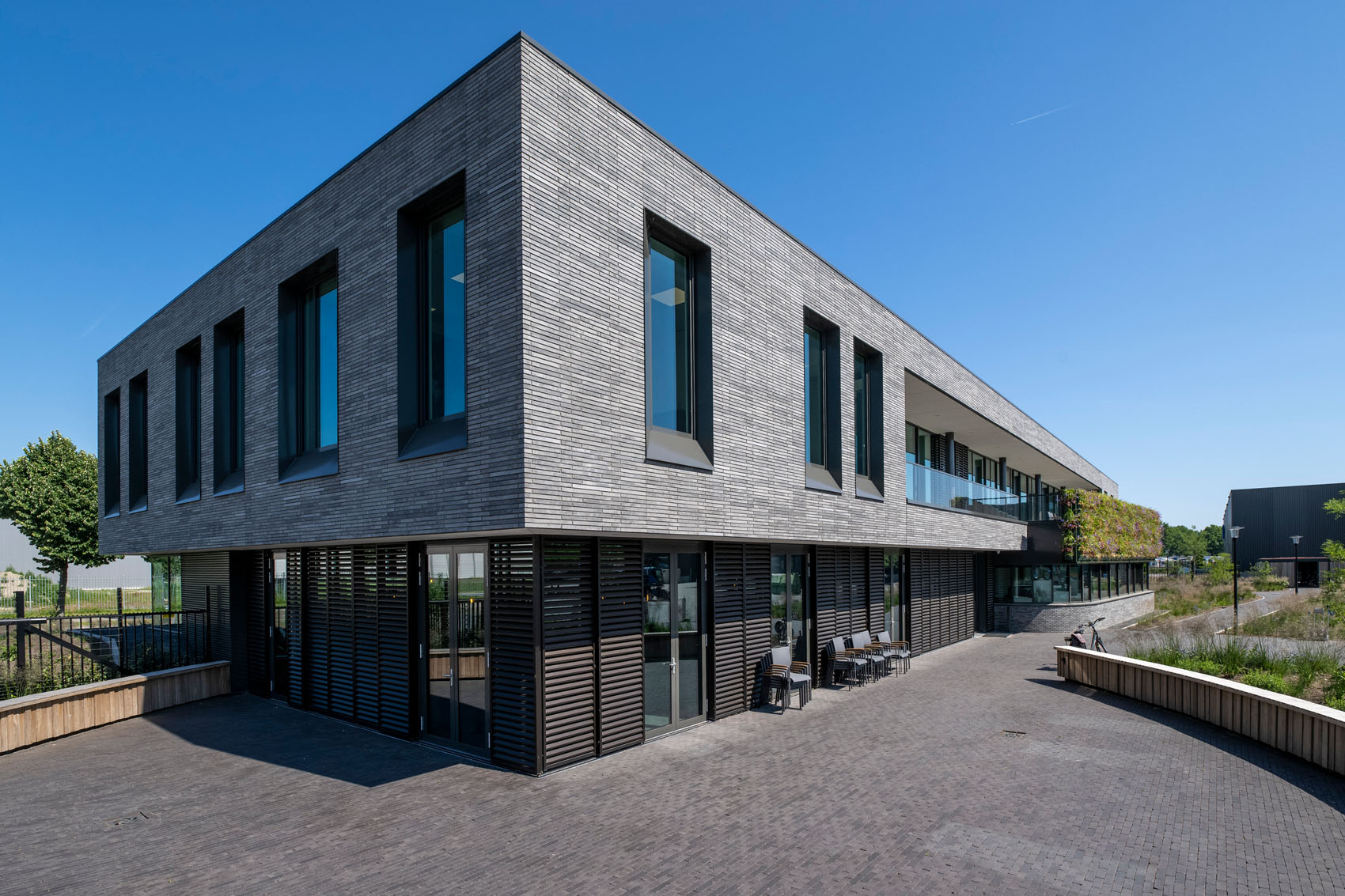 Het moderne en duurzame hoofdkantoor is ontworpen door Buro Kade uit Den Bosch. Een doel achter het ontwerp was om eenheid te creëren tussen het kantoor en alle bijgebouwen en hallen. Een groene plint verbindt de werkplaats, opslaghal en het hoofdkantoor. Deze plint transformeert zich uiteindelijk naar een terp waardoor het gevoel ontstaat dat het kantoor als een laags gebouw boven op een heuvel ligt. Voor de gevel is gekozen voor GeoStylistix, een moderne langformaat gevelsteen met natuurlijke granulaten en mooie nuancering. Vanwege zijn natuurlijke uitstraling past deze goed bij de groene plint en de donkere kleur van de bijgebouwen.