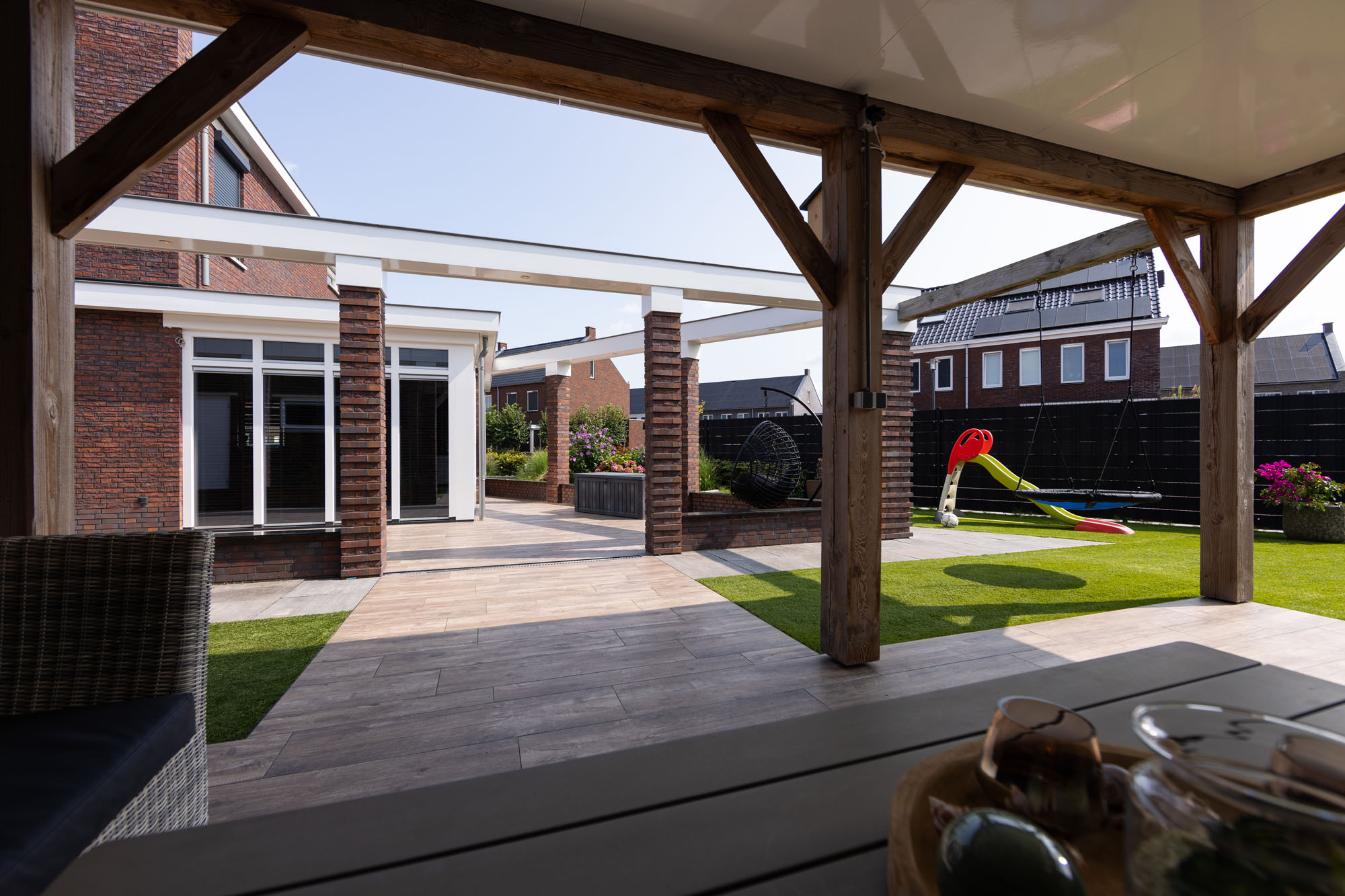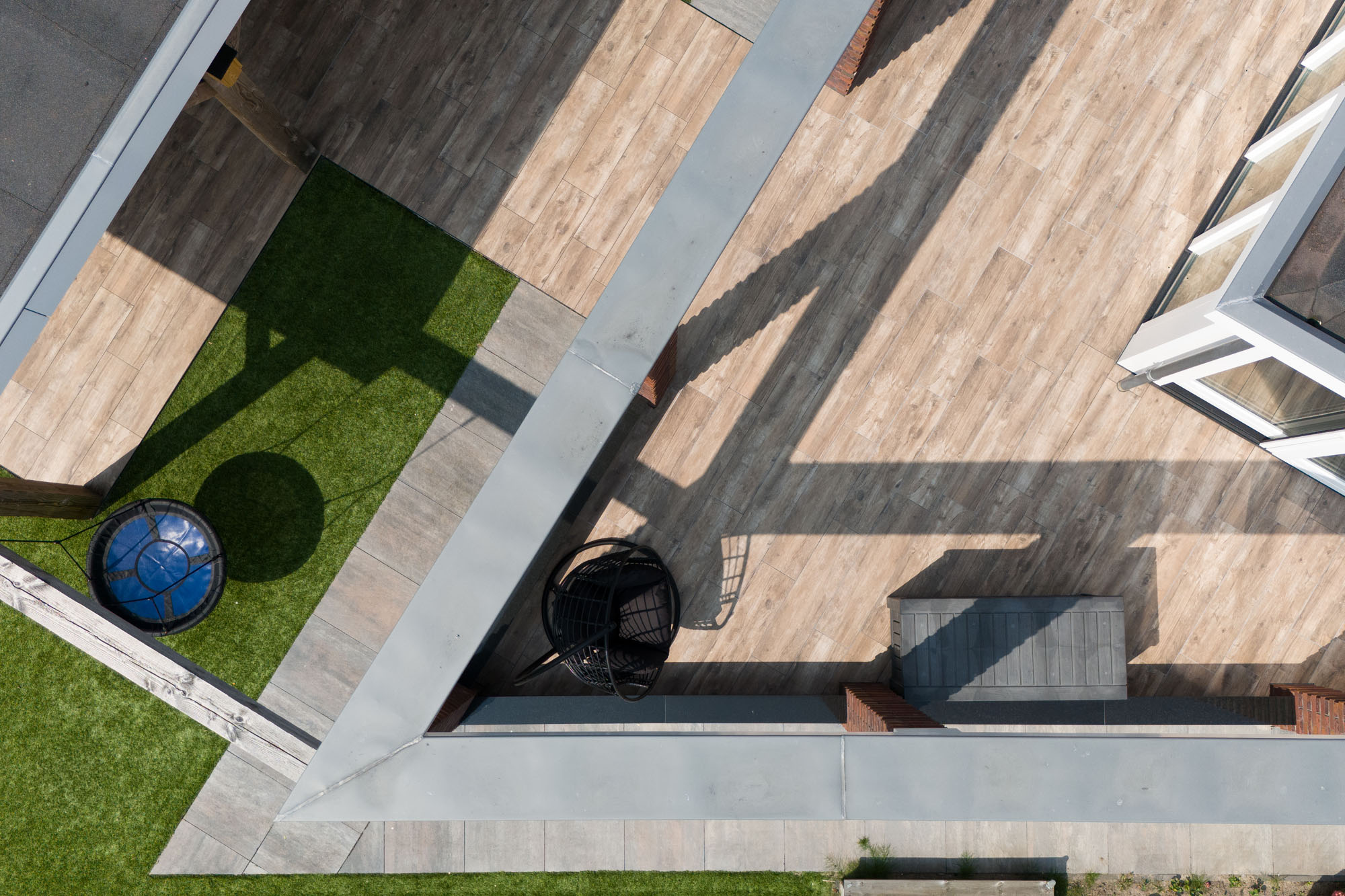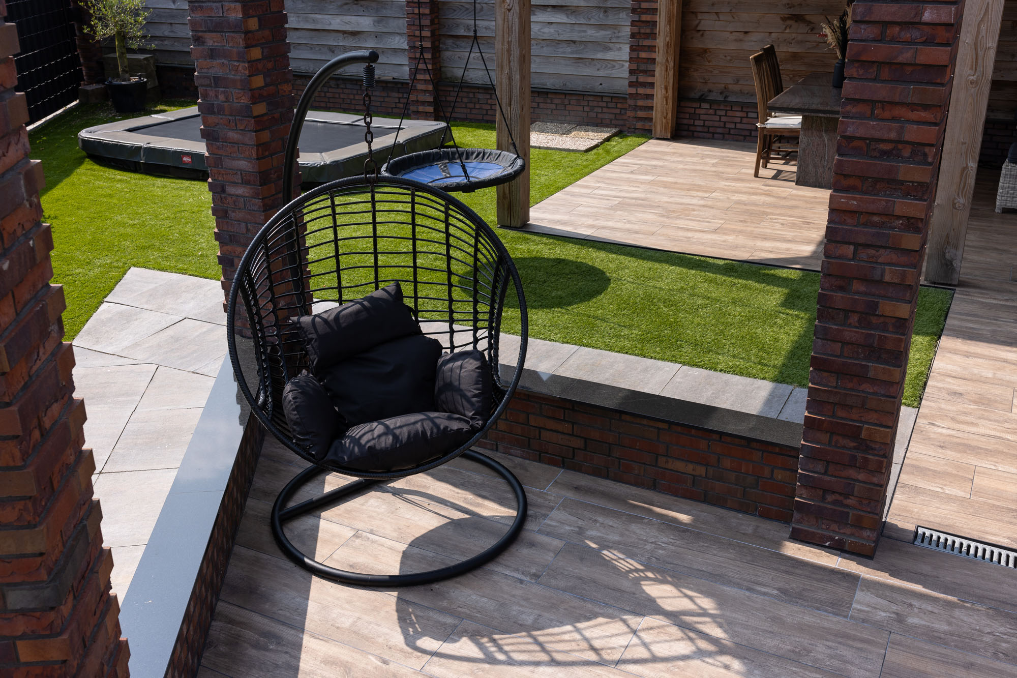 Speelse tuin met keramische houtlook tuintegels