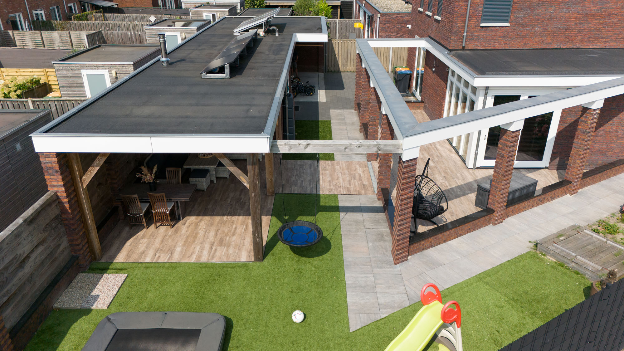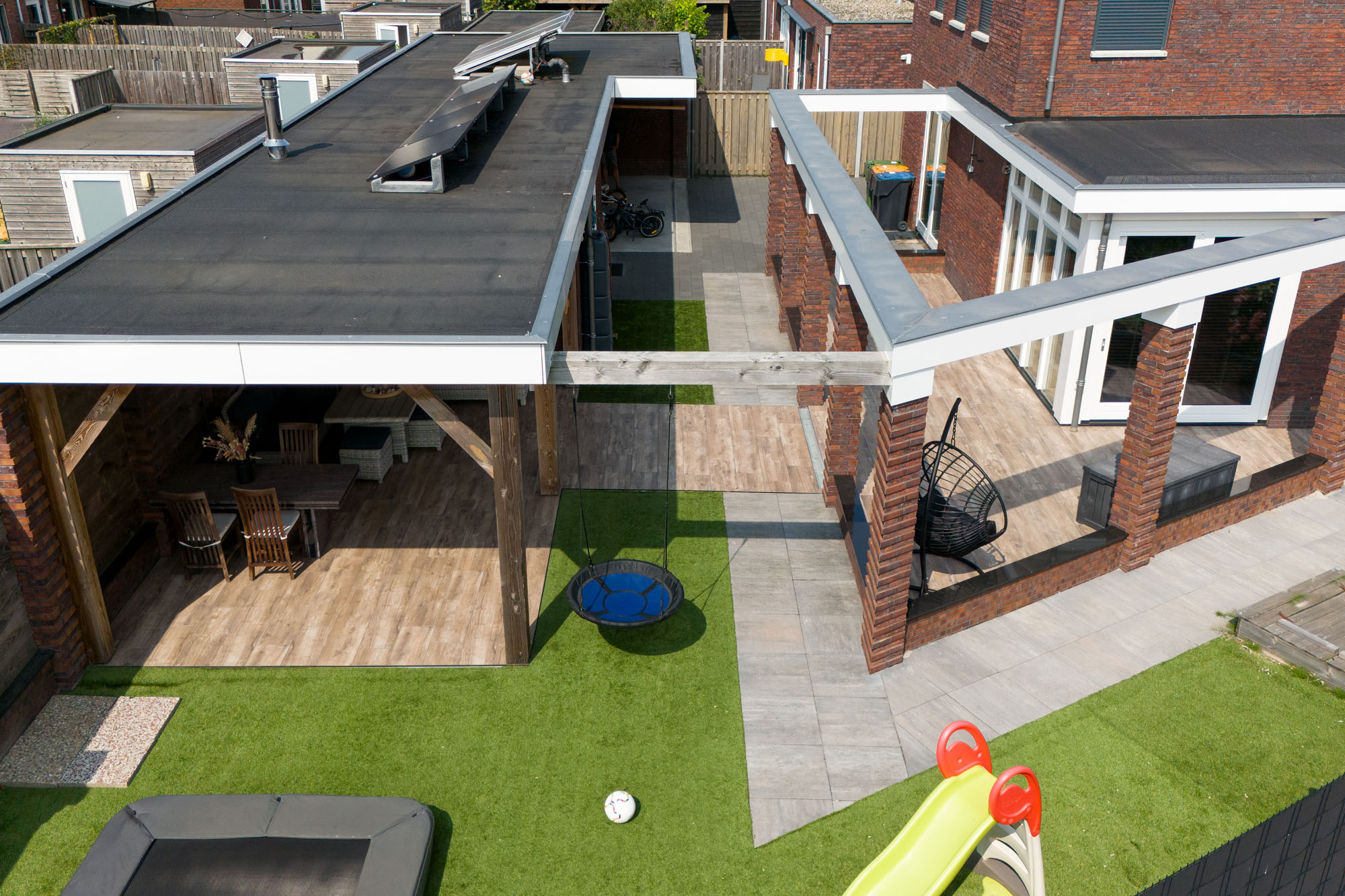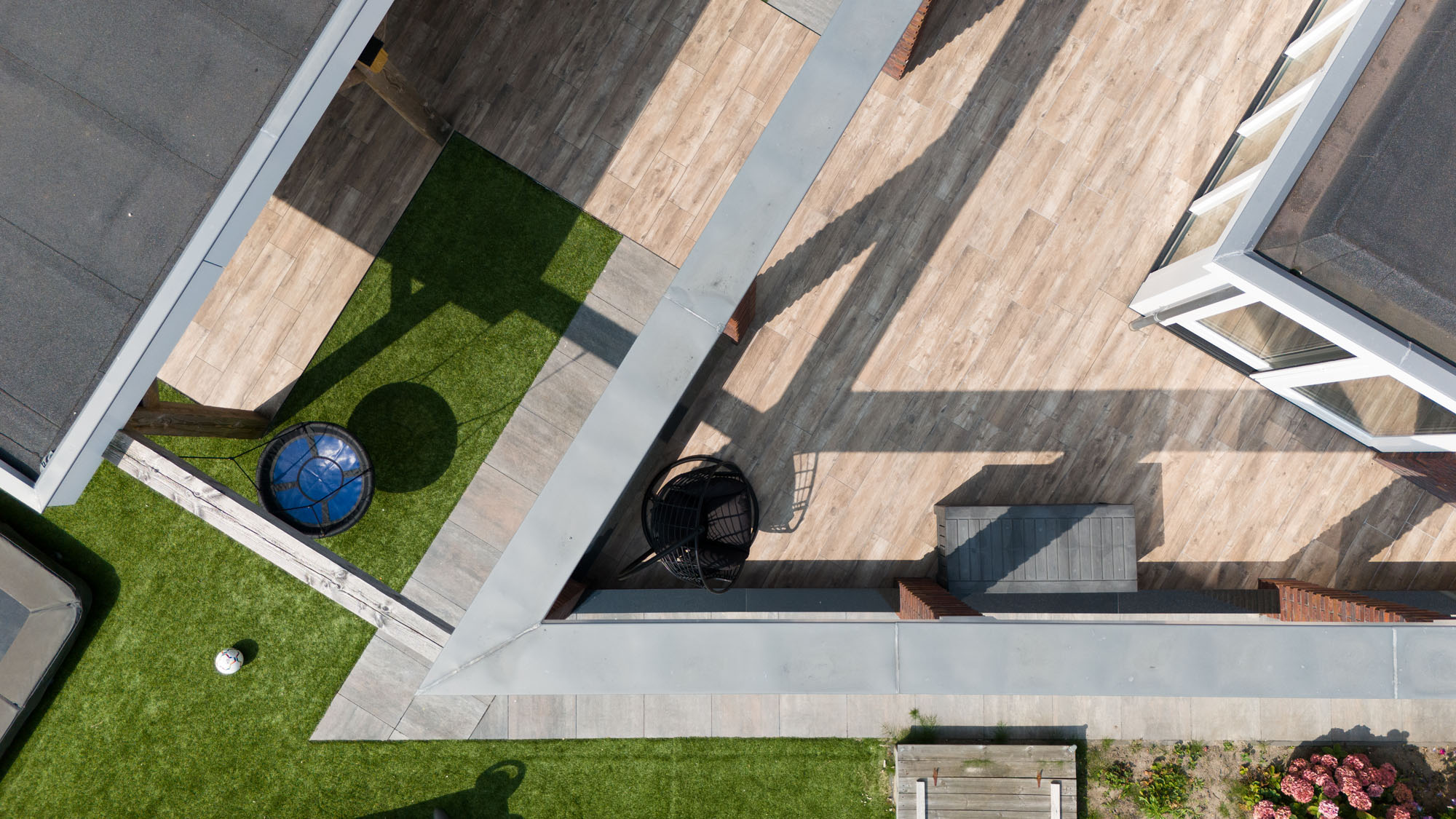 Speelse tuin met keramische houtlook tuintegels
