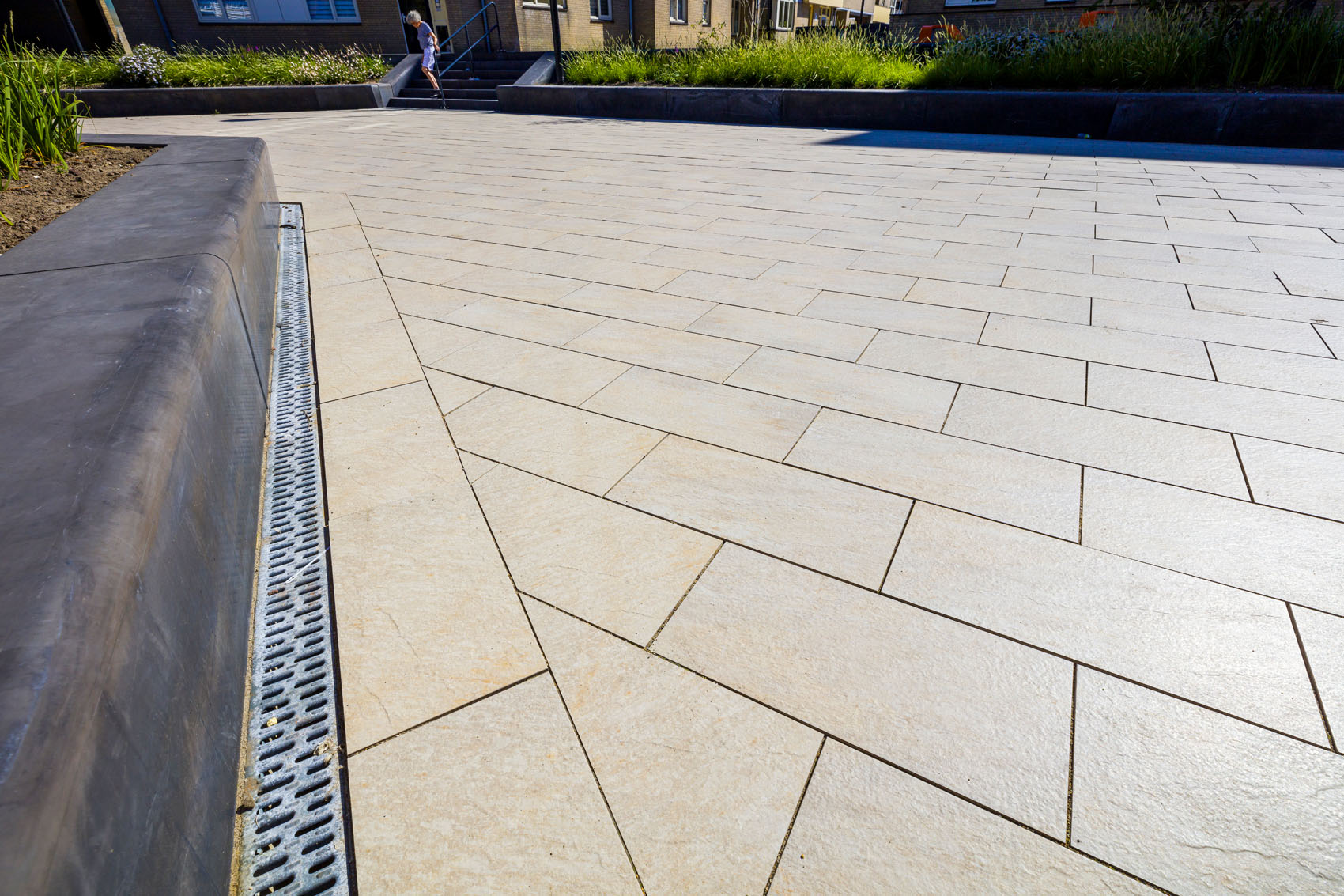 Parkbanden zijn zeer ruim inzetbaar en daardoor erg geliefd. Bij het Pier Panderplein zijn de Eleganta parkbanden ingezet als zitranden en traptreden, waarvan een deel is voorzien van een geïntegreerde keramische tegel. Deze keramische tegels zijn onlosmakelijk in het prefab beton verwerkt. Hier is gekozen voor een houtlook tegel, maar de keuze in designtegels is zeer divers waaronder ook tegels met natuursteen look behoren. De prefab elementen kunnen bovendien, naast de standaard uitvoeringen, op maat gemaakt worden. De inrichtingsmogelijkheden voor pleinen en parken zijn met de Eleganta collectie dus vrijwel onbeperkt.